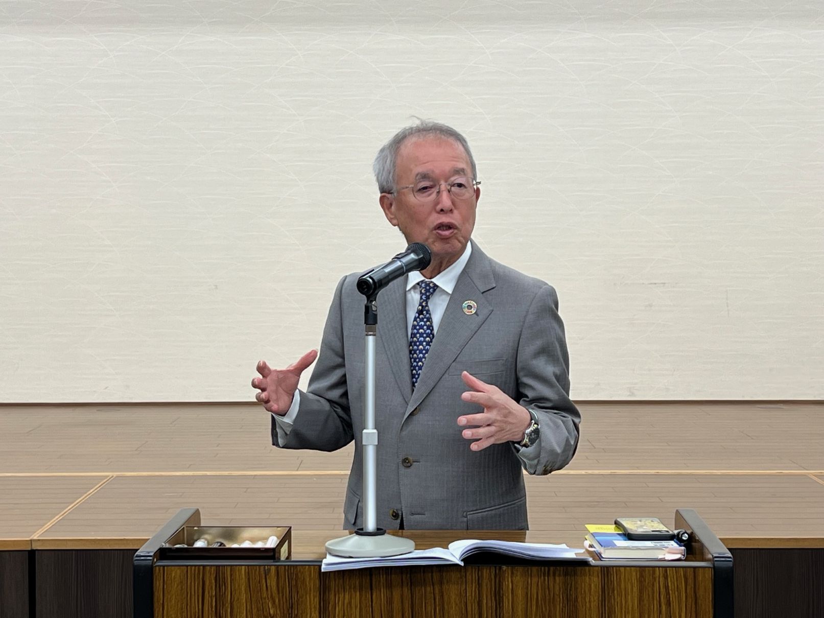 社内講師として芝純常務が登壇。