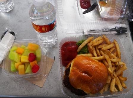 昼食はフードサービス部門が用意してくれたハンバーガーランチセット。