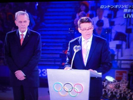 後ろはジャック・ロゲ国際オリンピック協会会長。