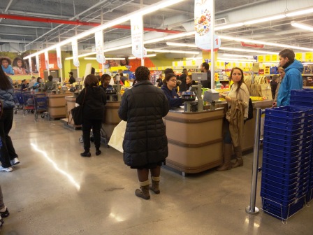 買い物したあとに長い行列に並ぶ。