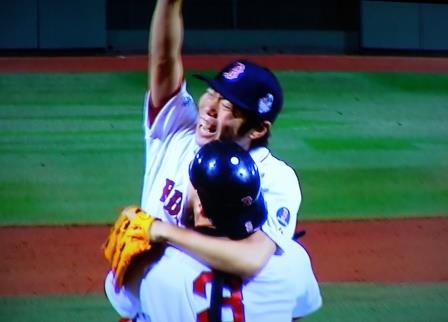 キャッチャーと抱き合う。