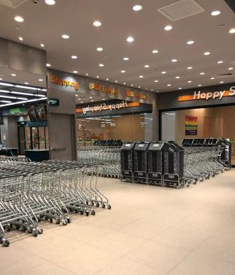 ショッピングカートがこんなに並ぶ。