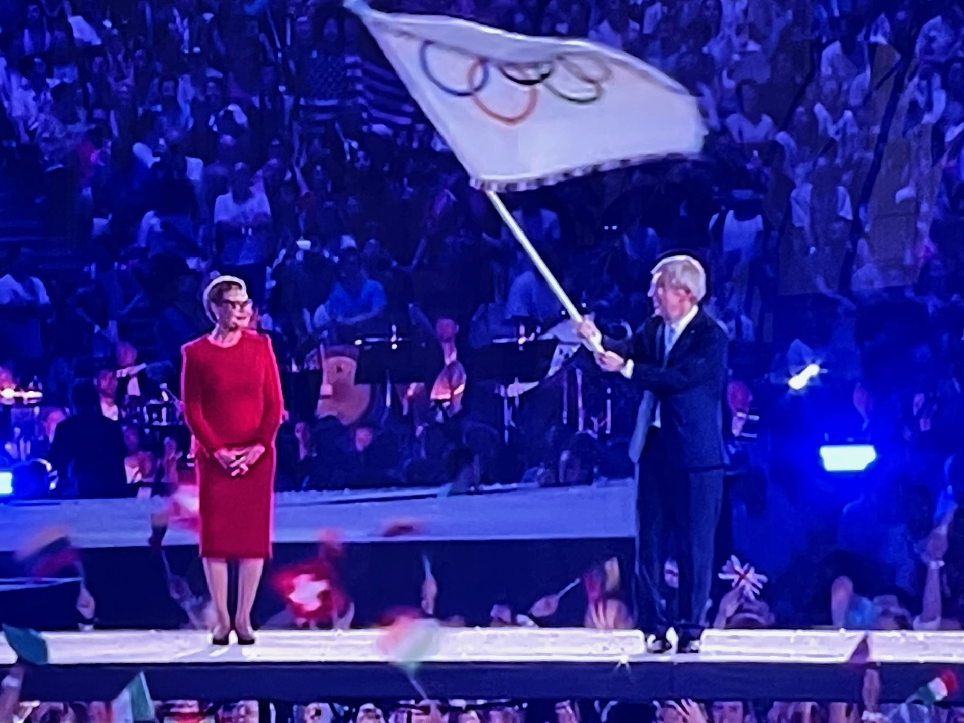 オリンピックフラッグを受け取ると、