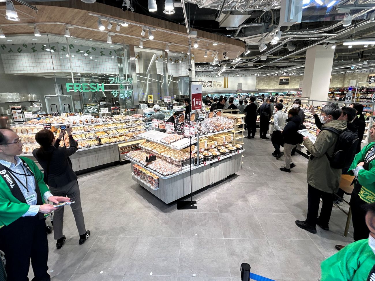 1階は惣菜、ベーカリー、酒売場、