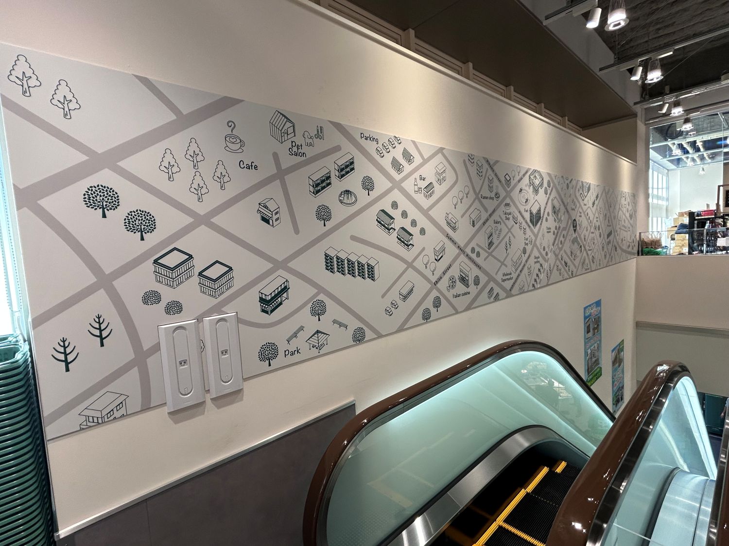 壁には店舗周辺の地図のイラスト。