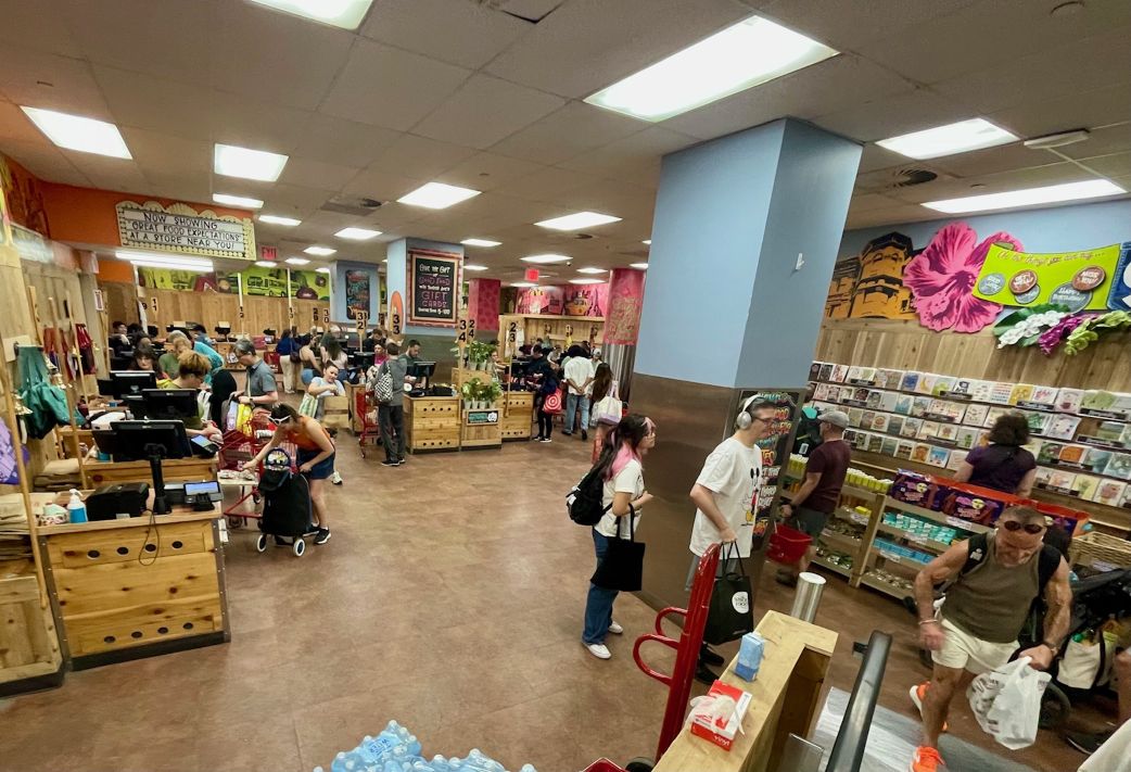 グロサリー売場は郊外型店舗より狭い。