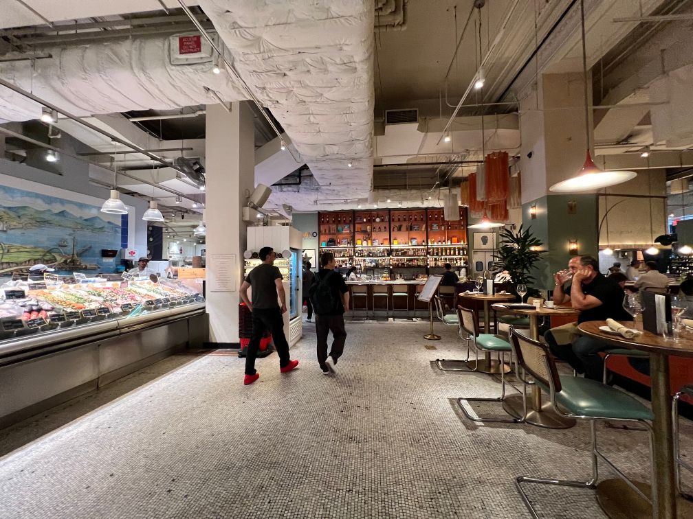 氷が敷き詰められてマンハッタン第一の魚売場。