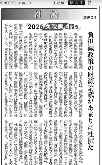 「負担減政策の財源論議が