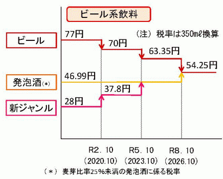 もう一つの税率変更は②の醸造酒類。