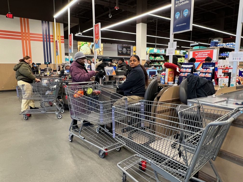 レジには長い行列がある。